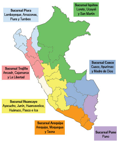 La función principal de las sucursales es representar al Banco en el ámbito de su influencia, elaborando información y estudios sobre la economía regional; llevando a cabo eventos en su jurisdicción como cursos, seminarios, talleres, conferencias y conversatorios, entre otros, sobre aspectos económicos y financieros; y asegurando un adecuado nivel, calidad y composición de circulante (billetes y monedas) en su región.